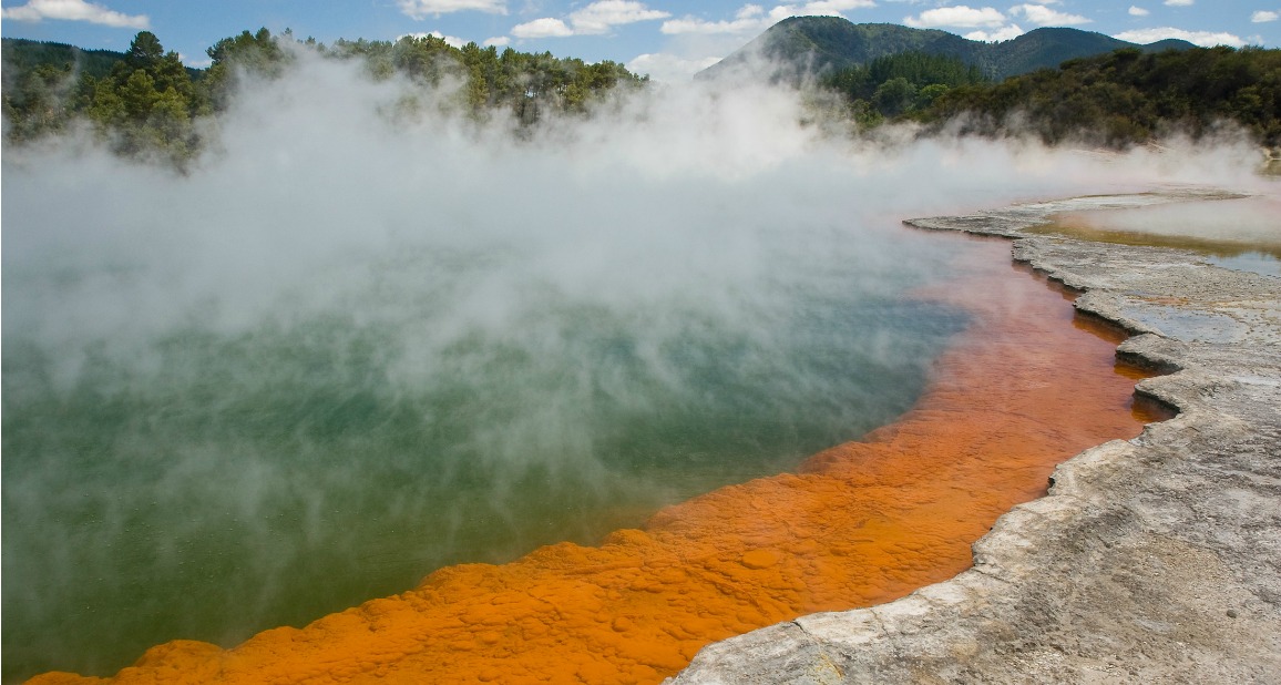 See New Zealand's largest boiling mud lake, colours of every tint and hue dsplayed in hot pools, steaming lakes, craters, vents, and mineral terraces at Waiotapu Thermal Wonderland.