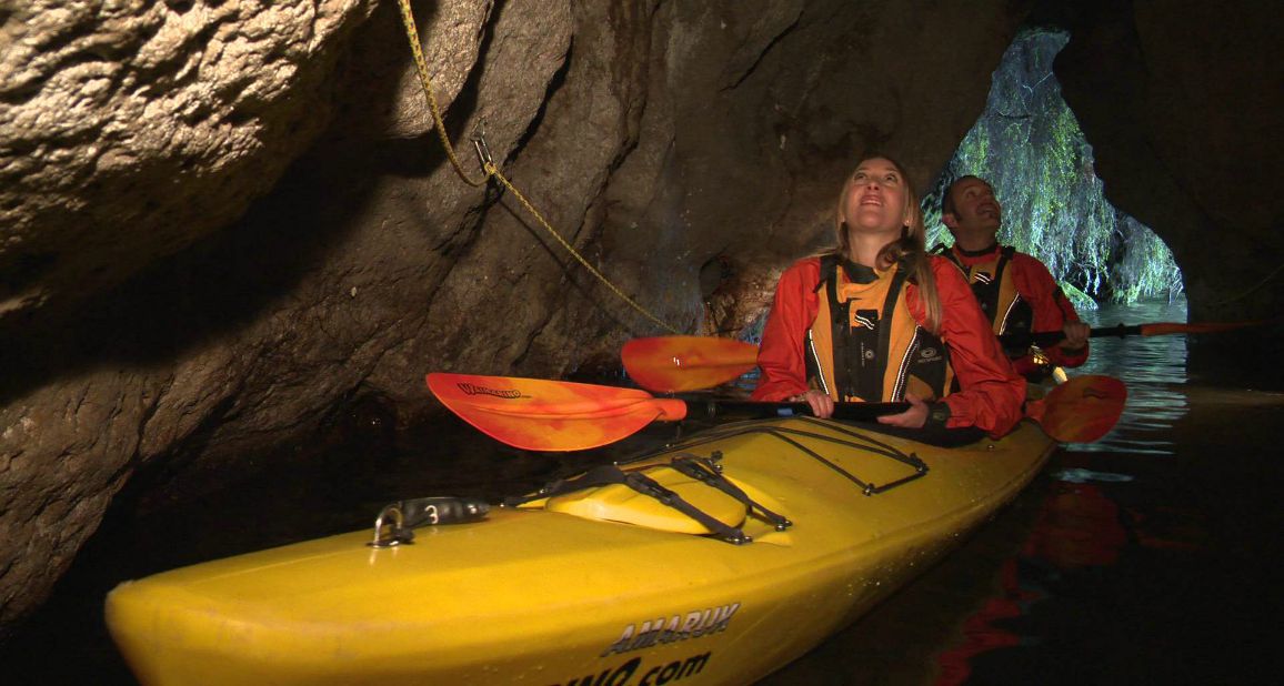 Take a scenic sea-kayak tour past cascading native bush before entering a magical glowworm grotto. The kayak tour ends with a relaxing soak in thermal hot pools.