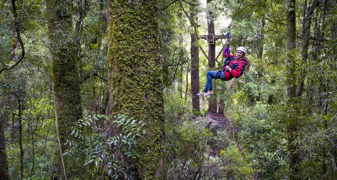 A magical journey through native forest traversing a network of ziplines, walking trails, swingbridges and tree top platforms at heights of up to 22 metres above the forest floor!