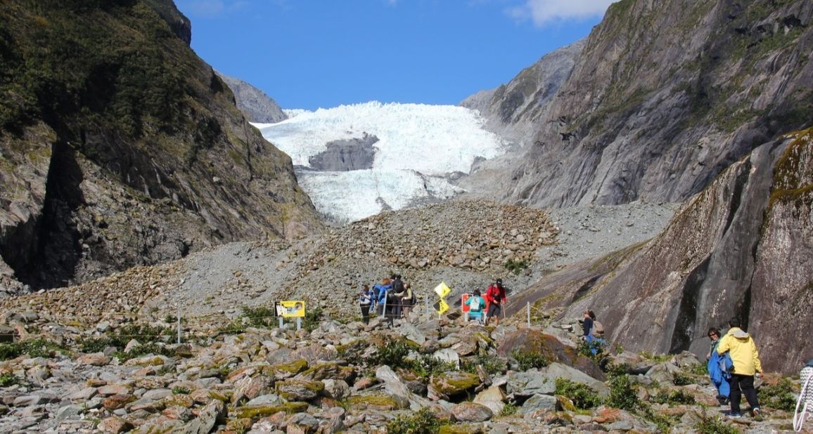 Franz Josef is a small but lively town in the heart of the West Coast, known for its 12 km long glacier. To see the ice from a viewpoint you can walk along the valley floor to the terminal face without a guide. However, to go on the glacier itself you must take a licensed helicopter tour.